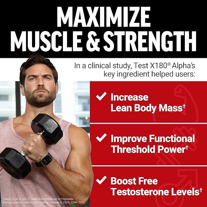 - BUILD LEAN MUSCLE: With Testofen Fenugreek, Test X180 Alpha’s formula is scientifically shown to support lean muscle growth in as little as 6 weeks vs. placebo, helping you build a strong, defined physique when paired with diet and weight training.