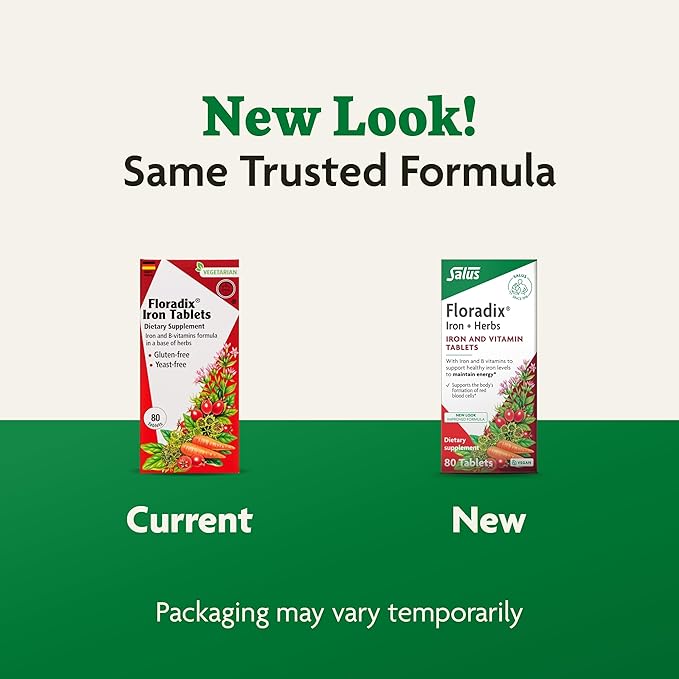 Floradix by Salus Iron Tablets - Energy Support Supplement for Men & Women - Natural Iron Supplement with B Vitamins & Vitamin C - Non-GMO, Vegetarian & Lactose-Free - 80 Tablets