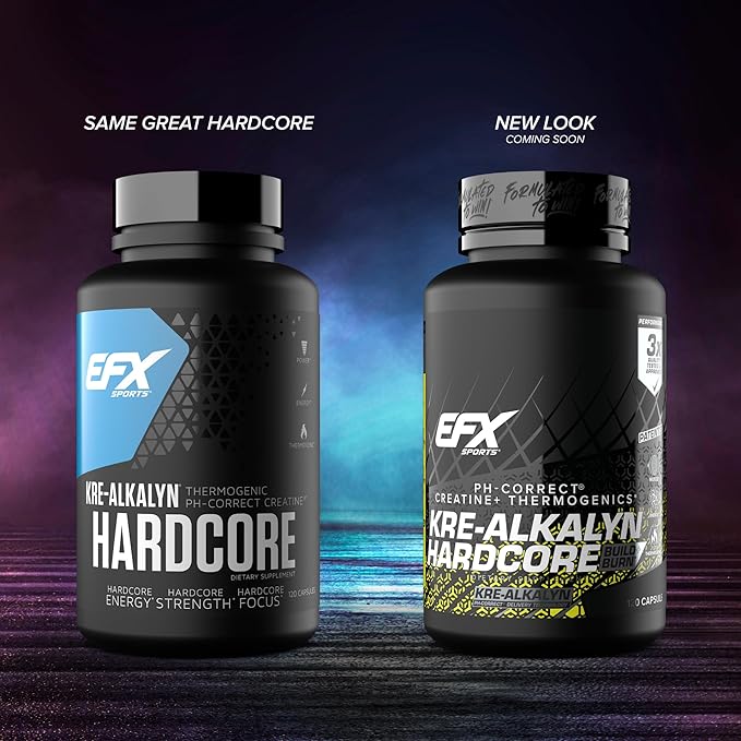 EFX Sports Kre-Alkalyn Hardcore | Thermogenic pH Correct Creatine Monohydrate Pill Supplement | Energy & Strength Pre Workout | 40 Servings, 120 Capsules