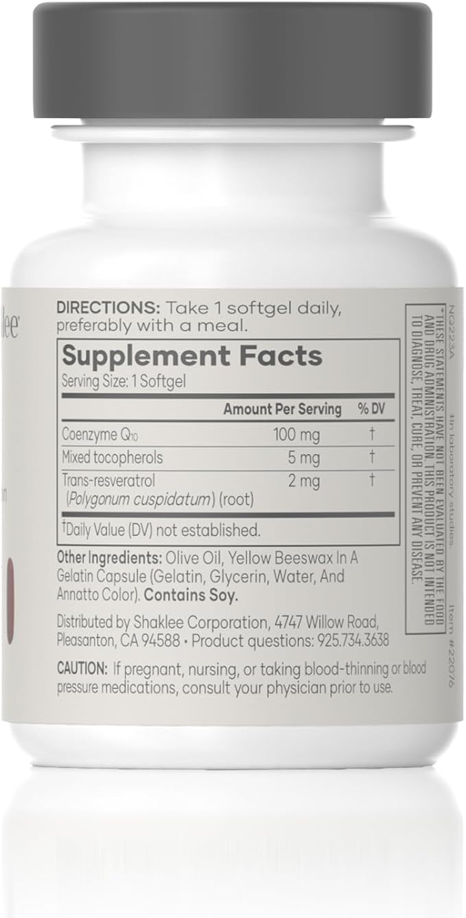 - Energy Support: Harnesses the power of coenzyme Q10 and resveratrol to provide your body with a boost in energy production. Supports the high energy demands of the heart for proper function and vitality.