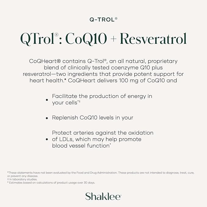 - Convenient Softgel Form: CoQHeart with Q-Trol is conveniently encapsulated in softgel form. With just one softgel per day, you can provide your body with the support it needs to overall well-being.