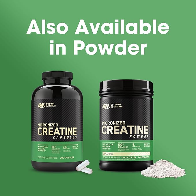 Optimum Nutrition Micronized Creatine Monohydrate Capsules, Keto Friendly, 2500mg, 100 Capsules