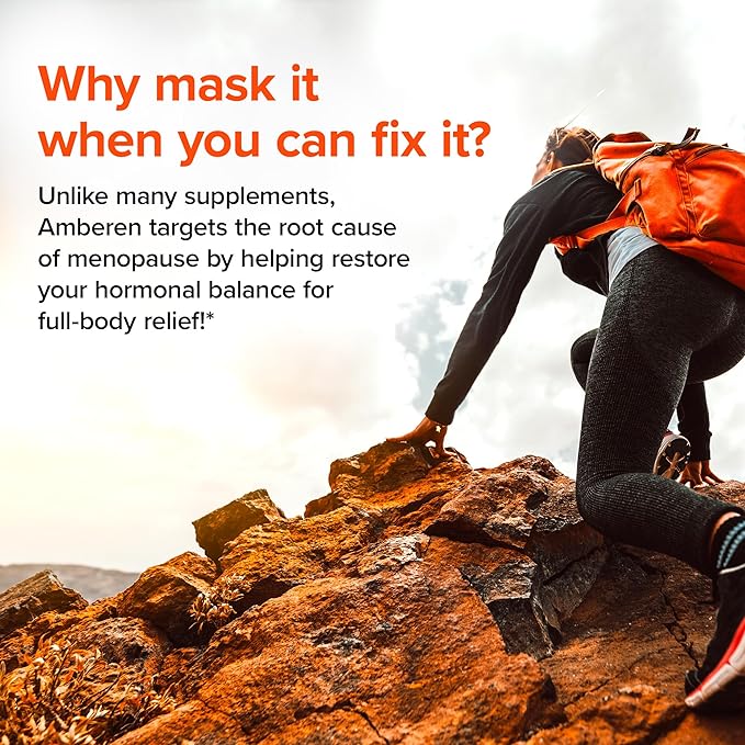 - HELPS RESTORE HORMONAL BALANCE: Amberen is estrogen-free, soy-free and herb-free and helps get to the root cause of menopause symptoms