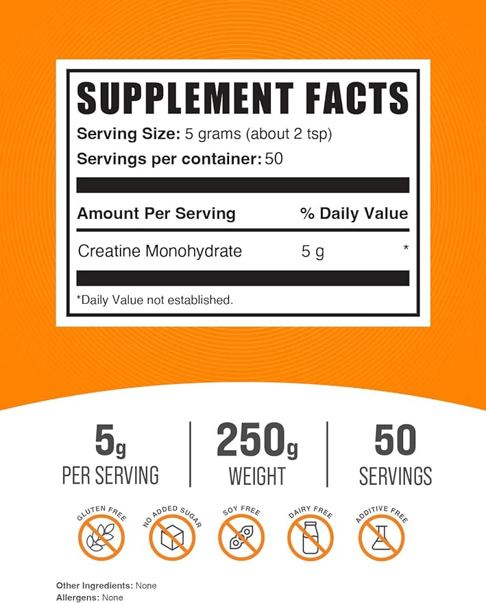 BulkSupplements.com Creatine Monohydrate Powder - Creatine Supplement, Micronized Creatine, Creatine Powder - Unflavored & Gluten Free, 5g (5000mg) per Servings, 250g (8.8 oz) (Pack of 1)