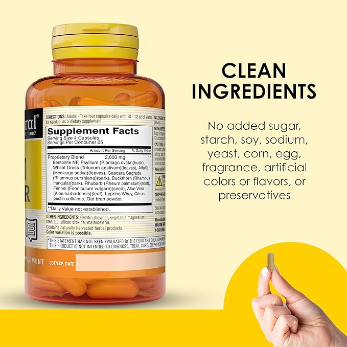 MASON NATURAL Herbal Colon Cleanser, 300 Day Supply, Dietary Supplement Supports Digestive Health with Soluble Fibers, Probiotics & Herbs, 3 Pack