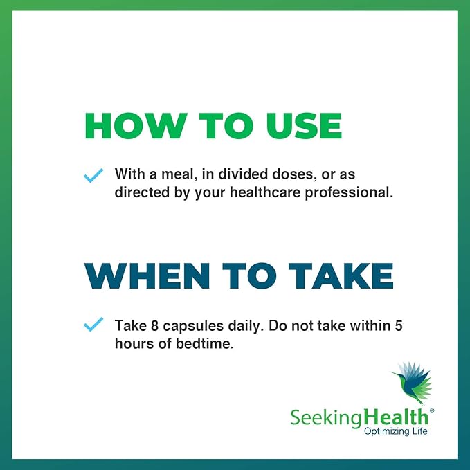 - Consistent quality: At Seeking Health, every ingredient is carefully sourced, researched, and tested. Each meets strict specifications for manufacturing and quality standards before any ingredient is allowed for use