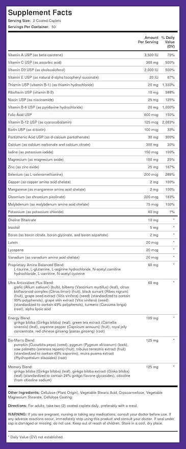 - With Powerful Ultra Antioxidant Plus, Bio-Mens, and Amino Balanced Blends