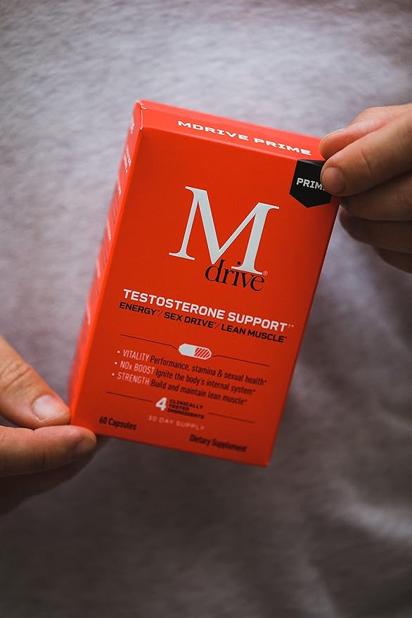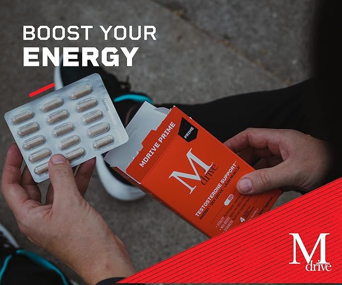 Mdrive Prime - Testosterone Support for Men, Max Energy, Stress Relief and Lean Muscle, KSM-66 Ashwagandha, S7 Nitric Oxide Booster, Bioperine and DHEA, 60 Capsules