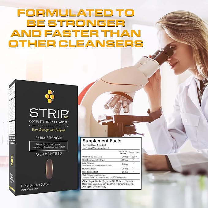 - One Hour Toxin Removal: Strip NC Softgel provides a solution to quickly clean your system from toxins with our unique cleansing herbs-Dandelion, Burdock, Milk Thistle Weed, Vitamins, and Creatine for a healthier lifestyle