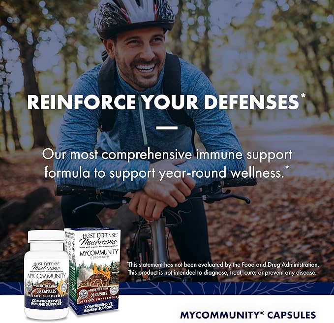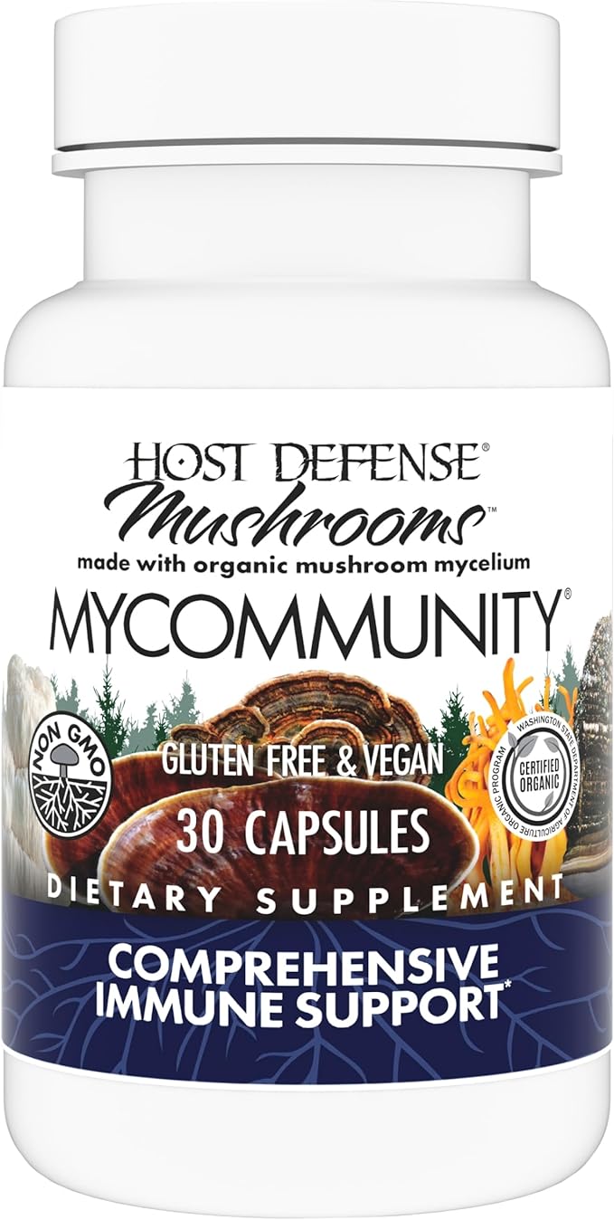 Host Defense MyCommunity Capsules - 17 Species Blend Mushroom Supplement for Immune Support - Herbal Aid with Lion's Mane, Reishi, Chaga, Cordyceps, Turkey Tail & More - 30 Capsules (15 Servings)*