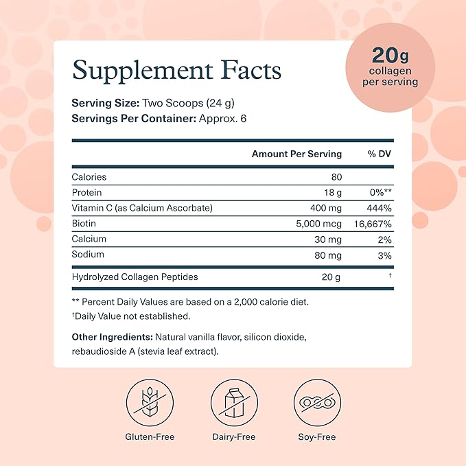 - Vitamin C & Biotin: In addition to collagen, this powder supplement has vitamin C, biotin, and 18 amino acids