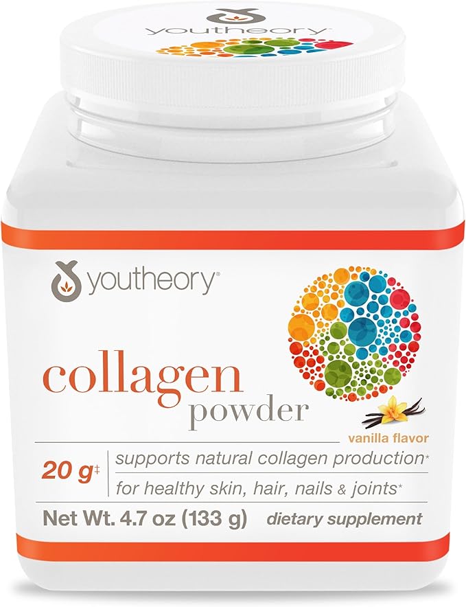 - Collagen Supplement: Youtheory Collagen Powder helps replenish this vital protein to support skin, hair, nails, tendons, and ligaments*