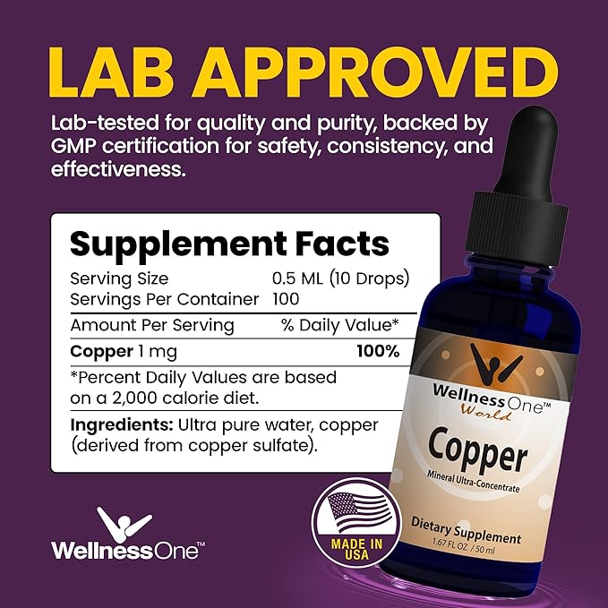 - Made in the USA - WellnessOne Liquid Copper is crafted in the USA with high-quality ingredients, free from fillers and artificial flavors. Our supplements are third-party tested, non-GMO, vegan, and gluten-free.