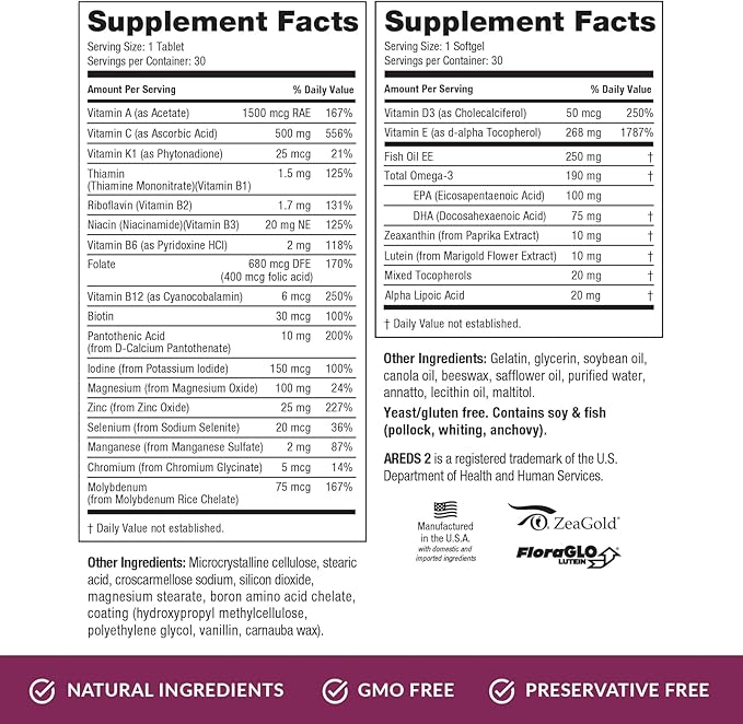 EyePromise Macular Health Complete | Multi-Vitamin + Eye Vitamin | Heart, Brain, Hair, Skin and Overall Health - 30-Day Pill and Soft-Gel Pack