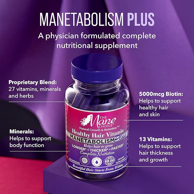 - Support Natural Hair Growth And Retention: Manetabolism Plus is a daily complete dietary supplement formulated to grow head hair longer, thicker, faster, and healthier. It can rejuvenate dead, inactive, and slow-growing follicles.