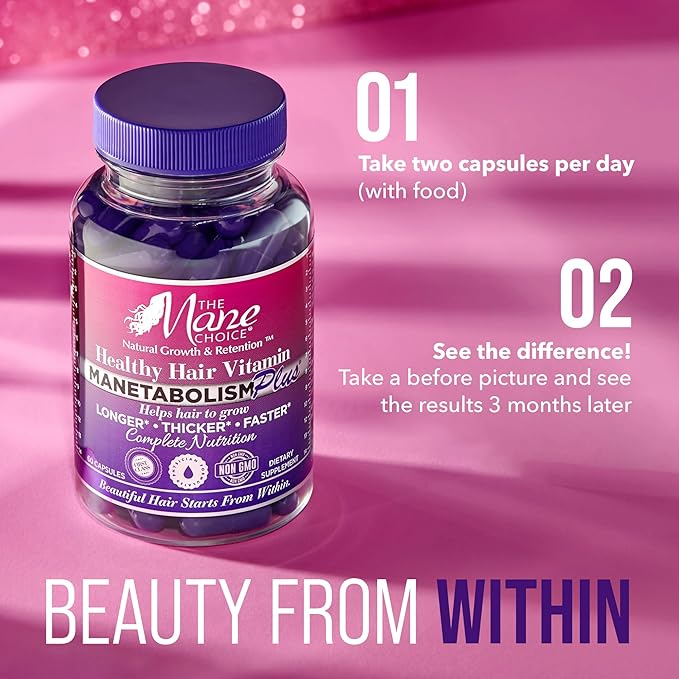 The Mane Choice MANETABOLISM Plus Healthy Hair Growth Vitamins - Supplements for Longer, Thicker, Healthier Hair - Hair Skin & Nails Vitamins for Women & Men (60 Capsules) Packaging May Vary