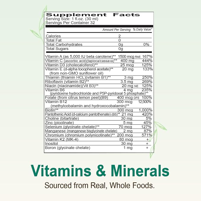 - CONVENIENT LIQUID: Enjoy your sugar-free daily multivitamins in non-chlorinated water or with juices. One BPA-free bottle supplies nutritional support for about 30 days per person.