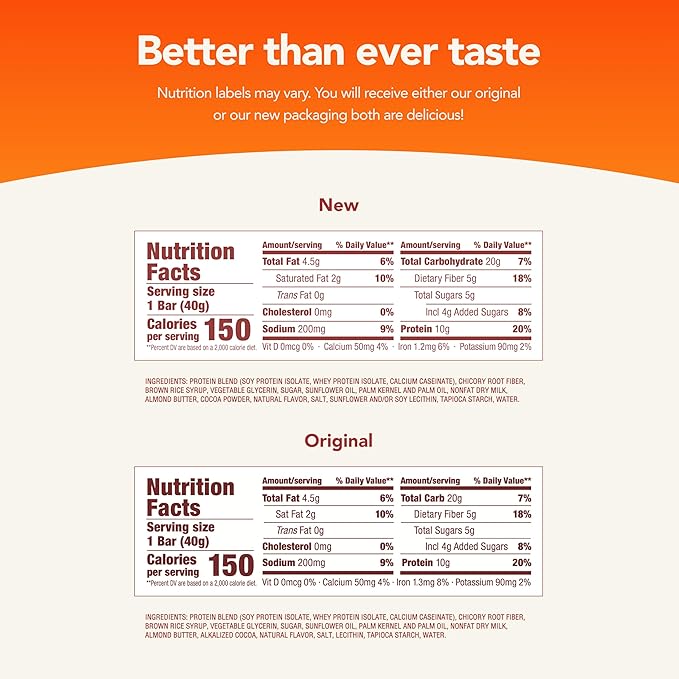 - With our relaunch of Protein & Fiber bars as Protein+ 150 Calorie bars, we have made a small recipe change, introduced a new coating, and simplifyied the ingredient list Most importantly, we hope you agree that we did not compromise on their delicious taste.