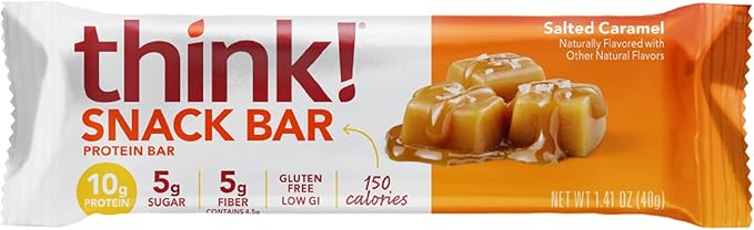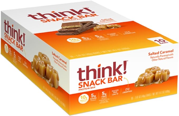 think! Protein Bars with Chicory Root for Fiber, Salted Caramel, Snack Bars without Artificial Sweeteners, 1.4 Oz, 10 Ct