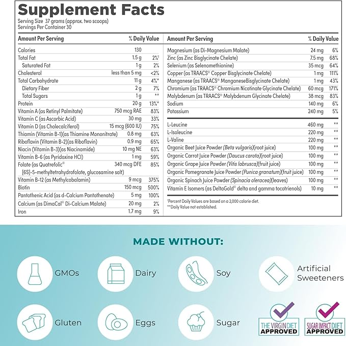 - Protein Shake to Kickstart Better Habits: With 20 grams of pure paleo protein and only 1g of sugar, this great-tasting, non dairy protein powder supports everyday energy levels, lean muscle, and healthy cartilage and ligaments. Use in the morning or as a light meal replacement shake.*