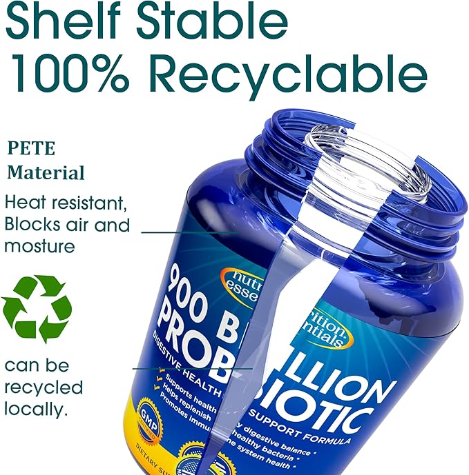 - 62%+ longer stability: CFUs decline by 5% per month when probiotics are poorly packed in transparent glass. We counter this with a specially-made, fully recyclable PETE bottle that shields from heat, light, & oxygen, prolonging potency by more than 62%.