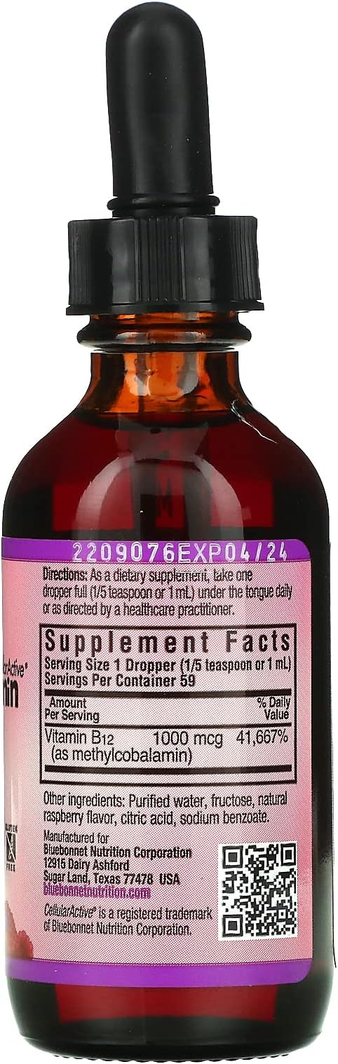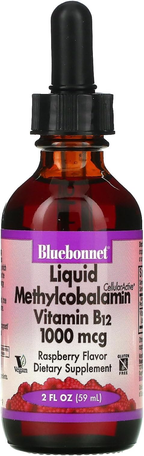 Bluebonnet Nutrition Liquid Cellular Active Methycobalamin Vitamin B12, 1000 mcg, For Cellular Energy Production and Nervous System Health, Soy-Free, Gluten-Free, Dairy-Free, Vegan, 2OZ, 59 Serving