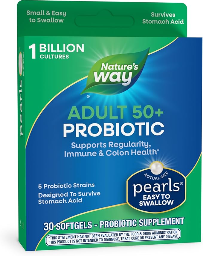 - Nature's Way Probiotic Pearls Adults 50+ support regularity, digestive balance, and immune & colon health while also replenishing the digestive tract with Bifidobacteria that tend to decline with age.*