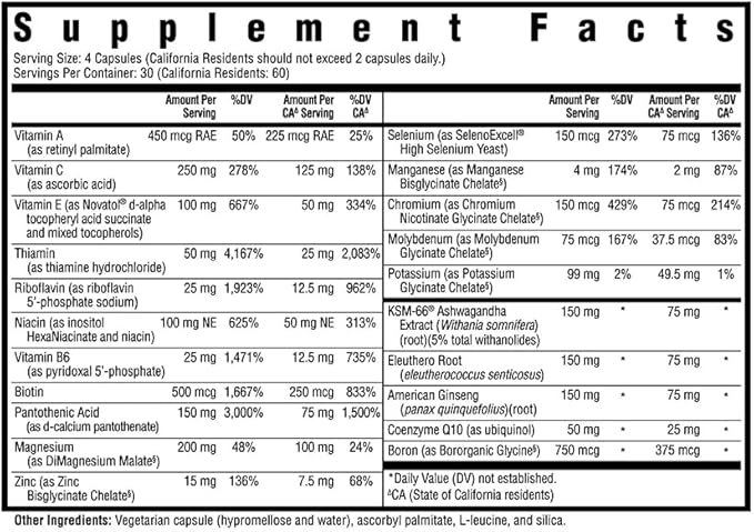 - Vitamin & Adaptogen Multivitamin: Daily vitamin with zinc and selenium as well as vitamins A, C, and E to support optimal thyroid function and antioxidant activity