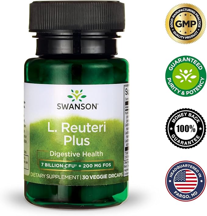- PROMOTES DIGESTIVE HEALTH: Designed to release in the lower GI tract for optimal benefit, Swanson's L. Reuteri Probiotic Plus supplement offers probiotic support to aid digestive function and promote gut health with ingredients you can trust.