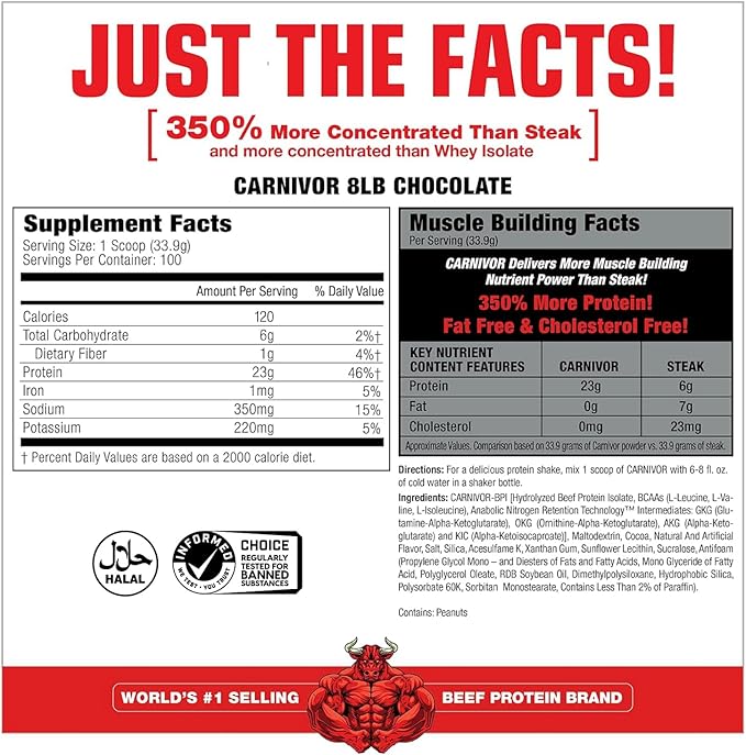 MuscleMeds Carnivor Beef Protein Isolate Powder, Chocolate, 7.47 lbs (003662)