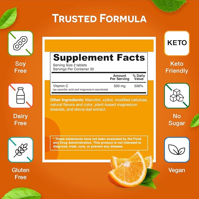 - 100% Deliciousness, 0% Sugar — Stop settling for daily Vitamin C supplements that are packed full of sugar. These sweet orange citrus tablets, made from just plant-derived sweeteners. Get all of the immune assisting benefits of sugar free Vitamin C without the crash*