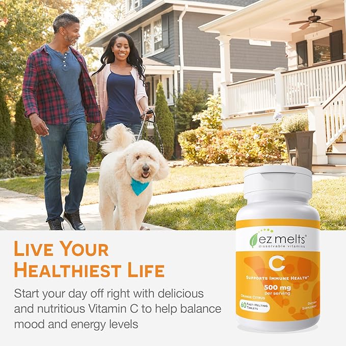 EZ Melts Dissolvable Vitamin C 500 mg, Sugar-Free, 1-Month Supply