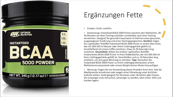 Optimum Nutrition Instantized BCAA 5000mg Powder, Unflavored, Keto Friendly, 60 Servings
