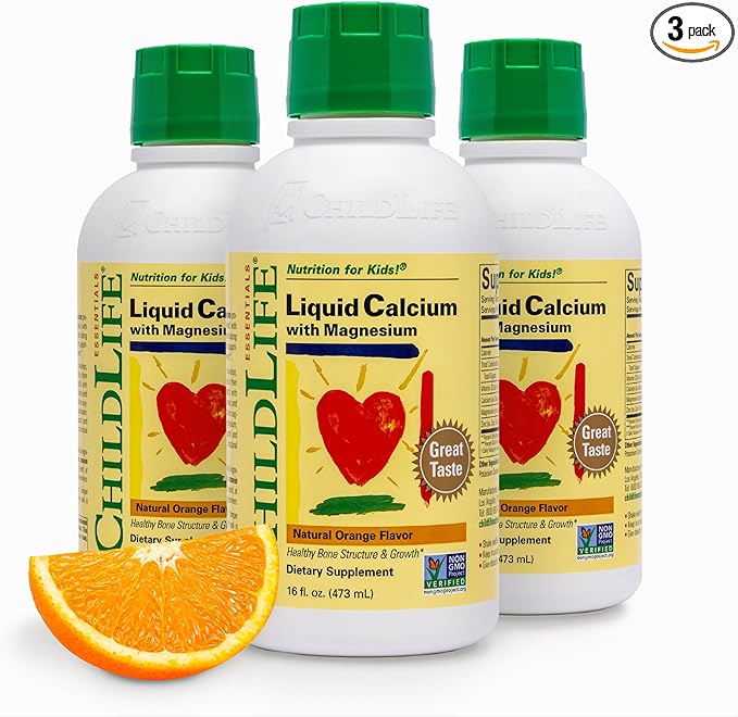 ChildLife Essentials Liquid Calcium Supplement for Kids - Baby Calcium with Magnesium, Zinc, and Vitamin D3 - Orange Flavor, 16 fl oz (3 Pack)