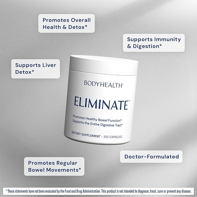 BodyHealth Intestinal Cleanse - Eliminate, Colon Cleanser Detox, Gentle Laxative Pills and Bowel Flush Constipation Relief for Adults, Body Cleanse for Colon Health and Clean Gut (100 Capsules)