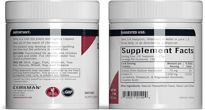 - HIGH POTENCY: Kirkman Buffered Vitamin C Powder contains 1,100 mg of Vitamin C in a buffered powder formulation that’s gentle on the stomach.*