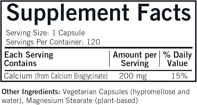 - PUREST CALCIUM: Kirkman Calcium Bisglycinate Chelate Capsules contain 200mg of calcium per serving, the primary mineral which helps support bone and nerve health, and cardiovascular health.*