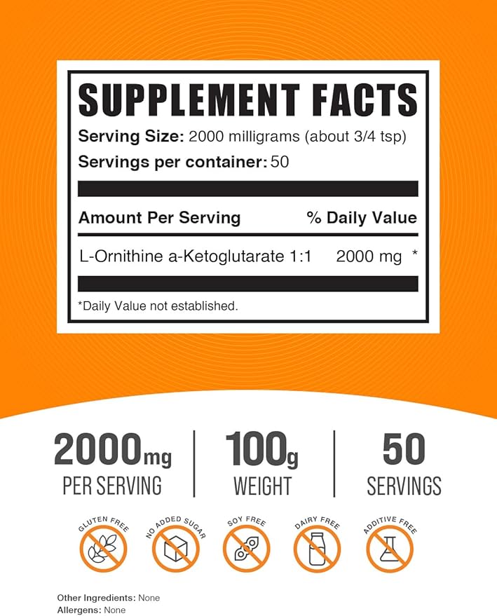 - Maximize your Potential: Enhance your active lifestyle with our L-Ornithine Alpha-Ketoglutarate powder, designed to support your strength and performance goals. Each serving delivers a substantial 2000mg dose, catering to both fitness enthusiasts looking to push their limits.