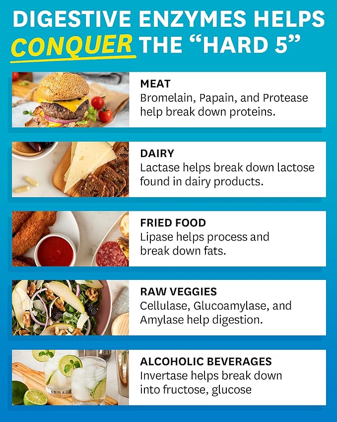 - Fast-Acting Enzymes – Powerful enzyme blend starts working immediately to break down food up to 39% more completely, and ease indigestion for rapid, noticeable relief