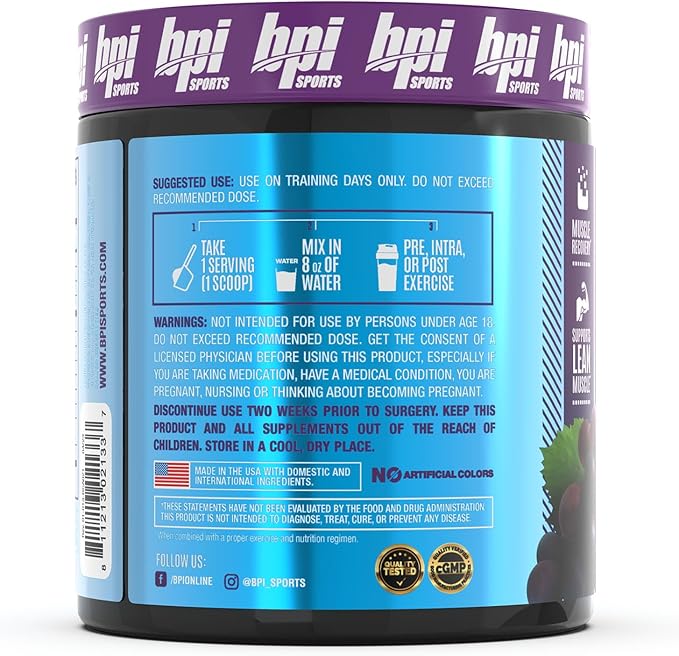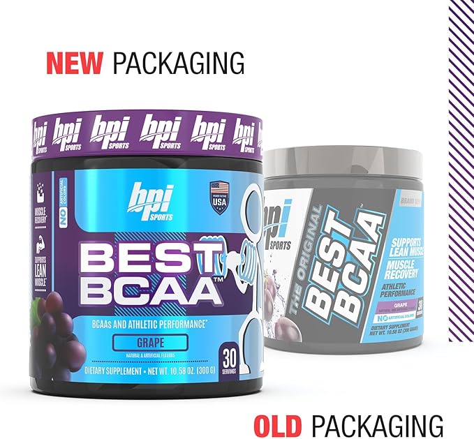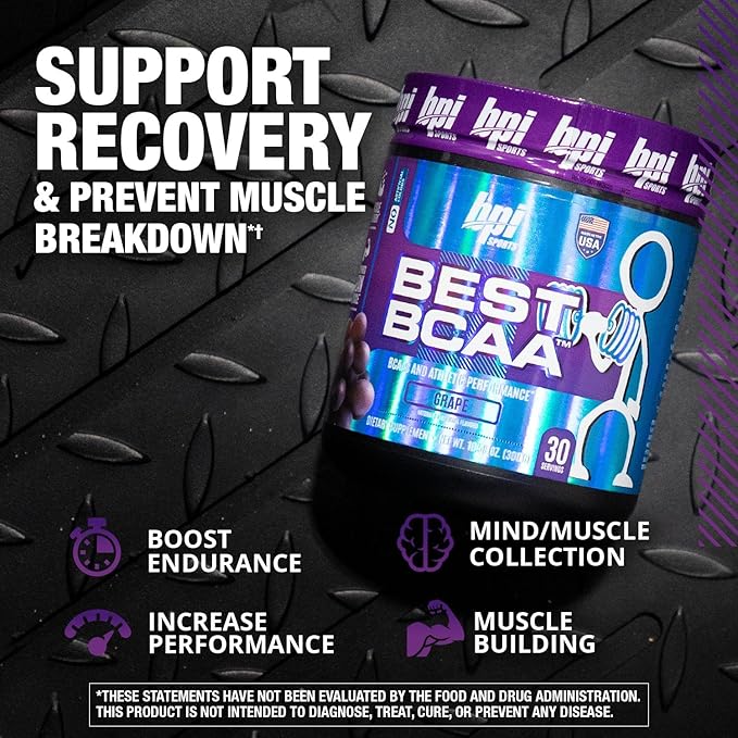 BPI Sports Best BCAA - The Building Blocks of Protein and Muscle - Post-Workout Recovery - Supports Metabolism - Omega 6 - Grape, 30 Servings, 300 g