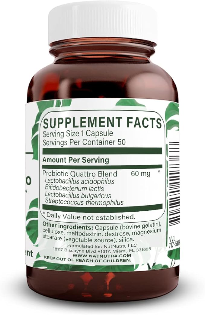 Natural Nutra Probiotic Quattro Supplement for Men & Women, Enhance Your Digestive Function, Improve Your Health, 50 Capsules