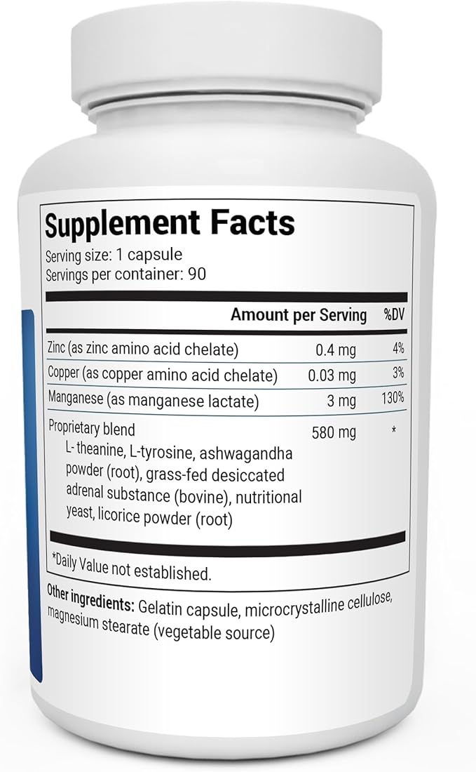 - ๐๐๐ฅ๐๐ก๐๐ ๐ฆ๐ง๐ฅ๐๐ฆ๐ฆ - This supplement now contains a proprietary blend of L-theanine, L-tyrosine, Ashwagandha, Nutritional Yeast and more incredible ingredients. It also includes other amazing ingredients like Manganese, Zinc and Copper. Includes 90 capsules.