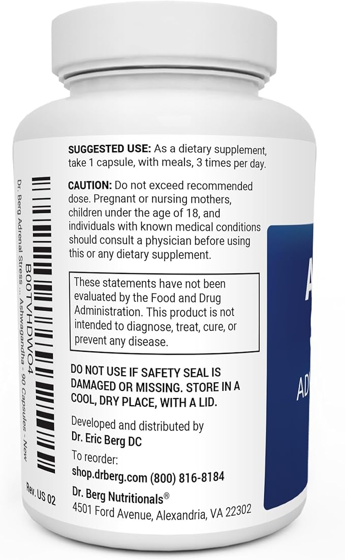 Dr. Bergโs Adrenal Stress Advanced Formula - Adrenal Support Supplements for Stress, Mood and Energy Support - Adrenal Supplements - Cortisol Manager with Ashwagandha - 90 Capsules