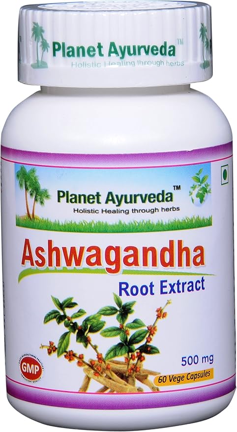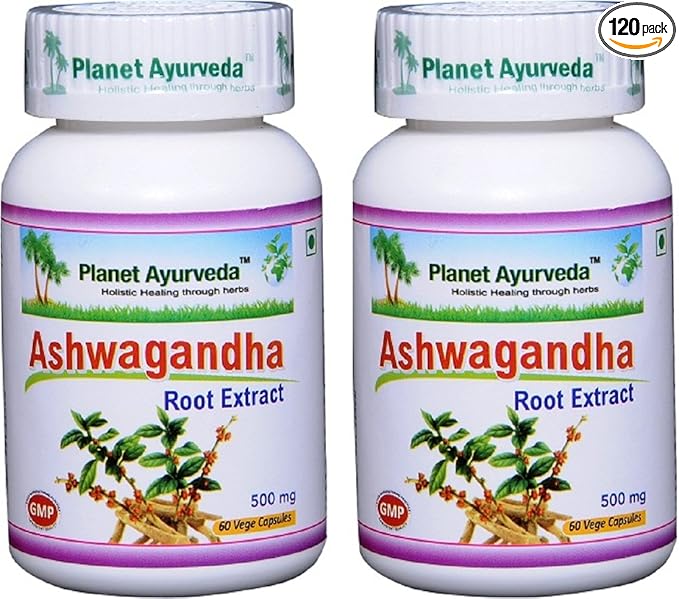 Planet Ayurveda Ashwagandha, 500mg Veg Capsules - 2 Bottles