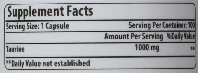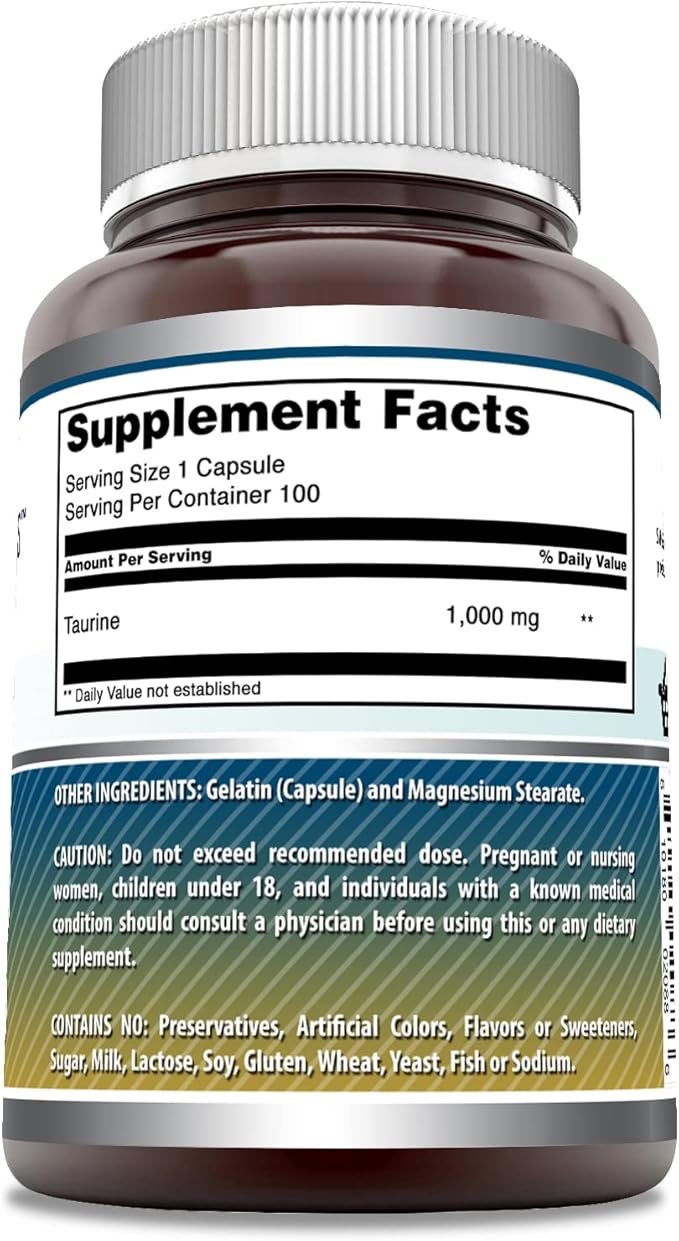 Amazing Formulas Taurine Amino Acid Supplement | 1000 Mg per Serving | 100 Capsules | Non-GMO | Gluten-Free | Made in USA