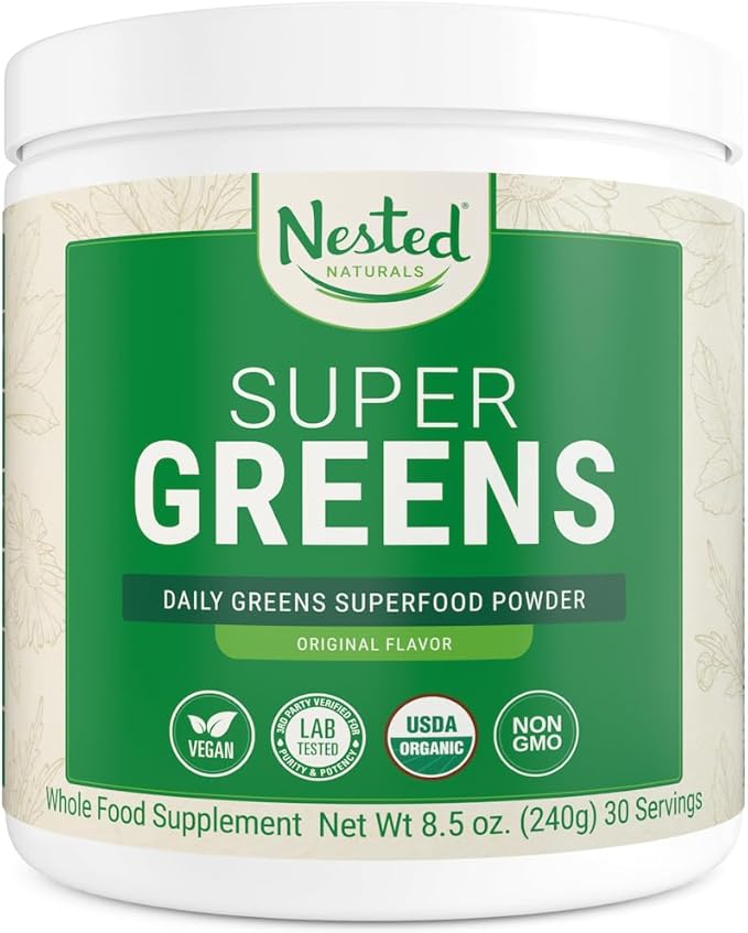 - Certified USDA Organic Greens Powder: Nested Naturals green superfood powder formula is non-GMO, vegan, and certified as organic by the USDA. Not only that, our Super Greens powder is third-party tested to ensure you’re getting only the highest purity and potency of ingredients.