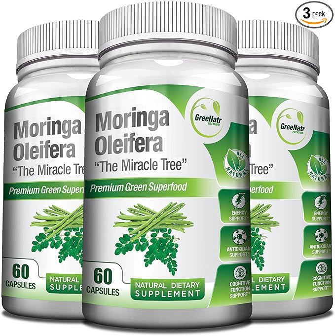 Pure Moringa Oleifera Leaf Extract Veggie Capsules 1000 mg. Natural Herbal Supplement. Energy, Mood, Memory and Focus Support. Premium Green Superfood (3 Bottles)