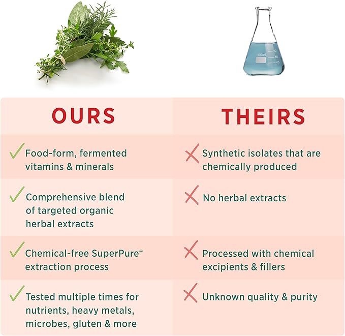 - ENERGY, IMMUNE SUPPORT, & MORE: Core vitamins and minerals promote energy and strength; herbal adaptogens and botanical extracts provide support for stress, immune health, brain health, and more.