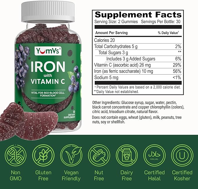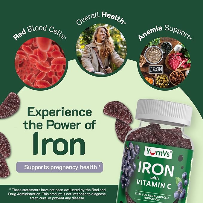 - DELICIOUSLY GRAPE GUMMIES - Our gummy Iron supplement with Vitamin C comes in a tasty grape flavor that you'll look forward to. An iron gummy supplement is a great alternative option instead of slow release iron pills or iron drops for women & men.