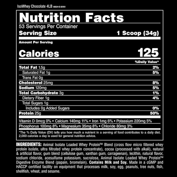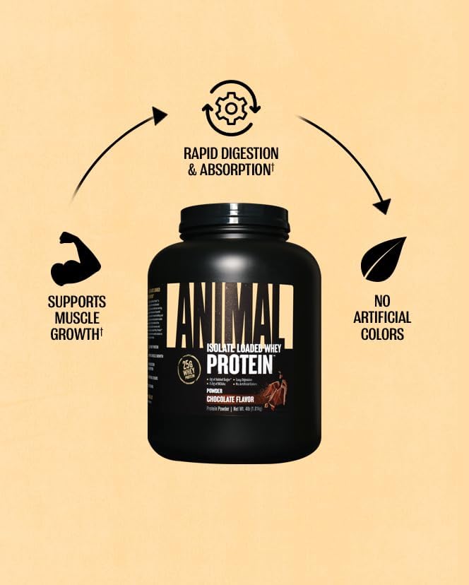 Animal Whey Isolate Protein Powder - Loaded for Pre & Post Workout Muscle Builder and Recovery with Digestive Enzymes for Men & Women - 25g Protein, Great Taste, Low Sugar - Chocolate 4 lbs